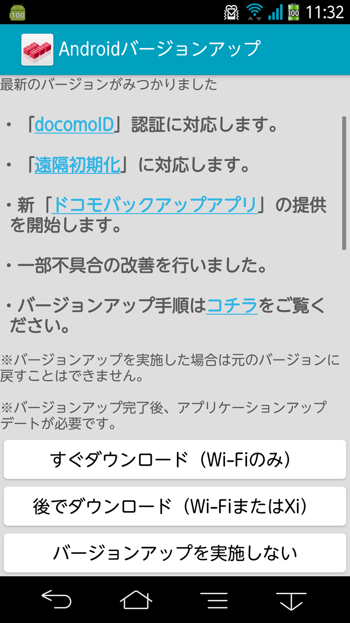 これらのうち、プリインストールされているアプリについては、先ほどの「下準備」の段階でdocomo ID認証対応のアップデートが済んでいます。「ドコモメール」など、プリインストールされていないアプリに関しては、docomo Application ManagerまたはGoogle Playストアで最新版にアップデートしておく必要があります。