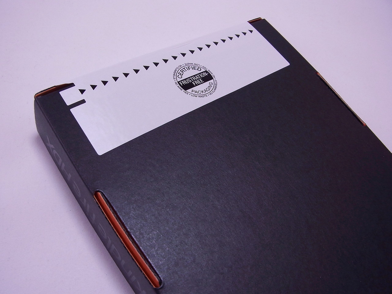 黒一色の高級感漂う化粧箱の登場です!Amazonらしい厚手のしっかりとした紙材質が使われています。