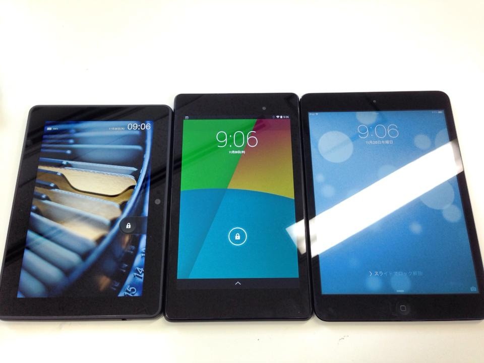 左からKindle Fire HDX、Nexus7(2013)、iPad mini(初代)