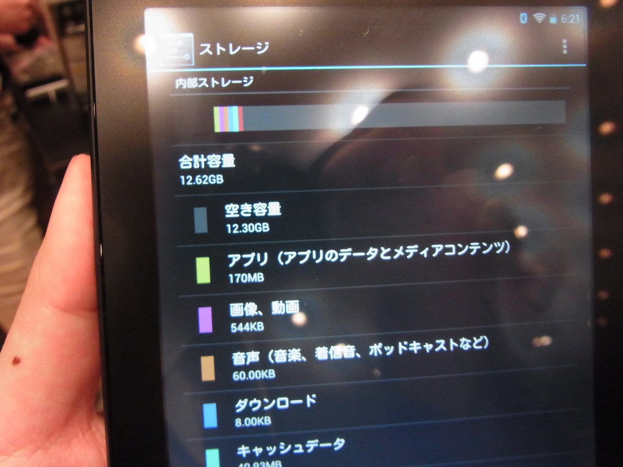 初期の状態ではユーザーが自由に利用できるメモリは約12.3GB。外部メモリとして最大32GBまでのmicroSDHCメモリーカードに対応します。