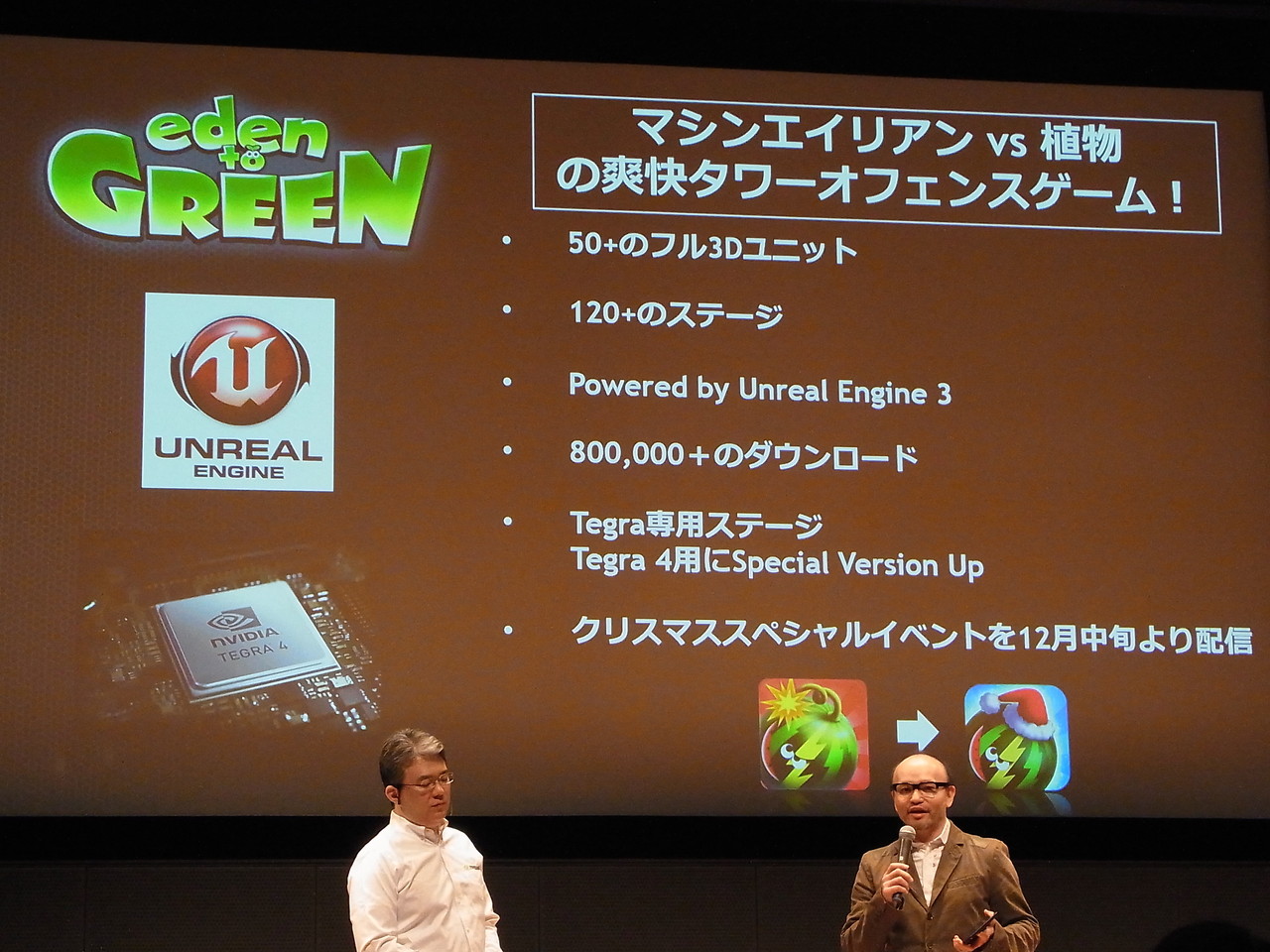 Tegra 4の高性能さをアピールする中で一部のゲームにはTegra 4搭載モデル専用のエフェクトや専用ステージも用意されるそうで、例えばTegra 4を搭載していないNexus 7やiPad mini Retinaディスプレイモデルにはエフェクトも簡略化されるほか、専用ステージも表示されないそうです。