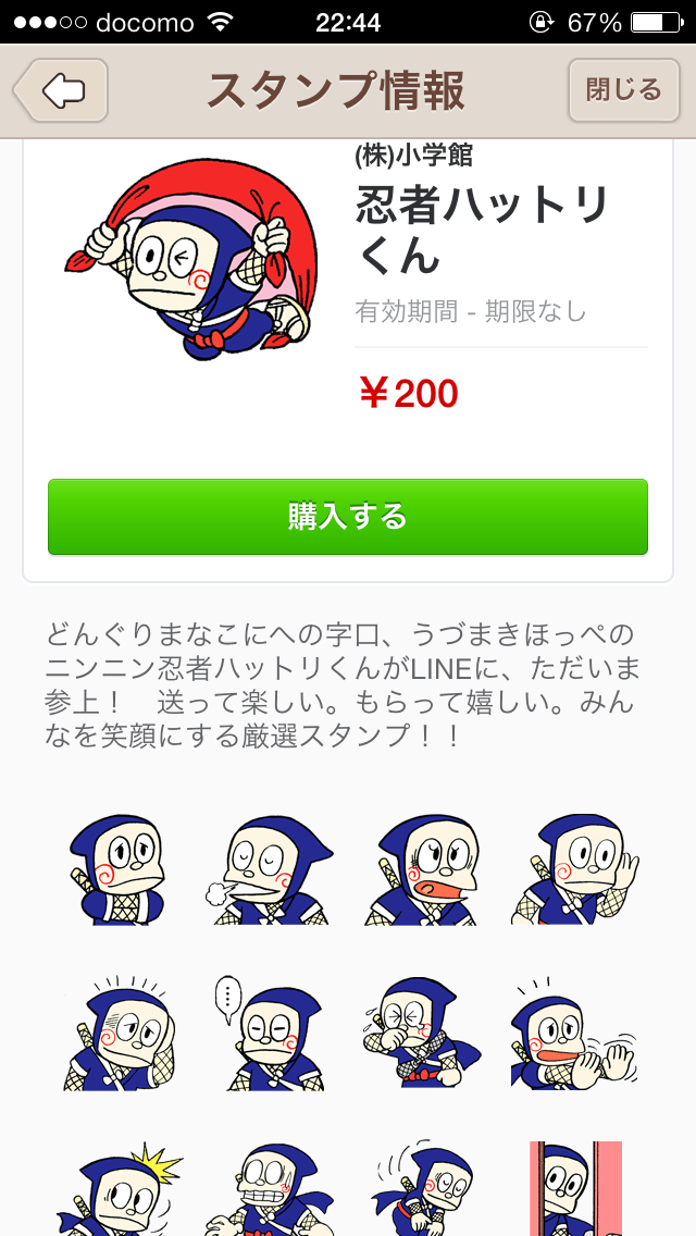 ニンニン忍者ハットリくんが、LINEにただいま参上!送って楽しく、もらって嬉しい、みんなを笑顔にするスタンプがたくさん詰まっています。
