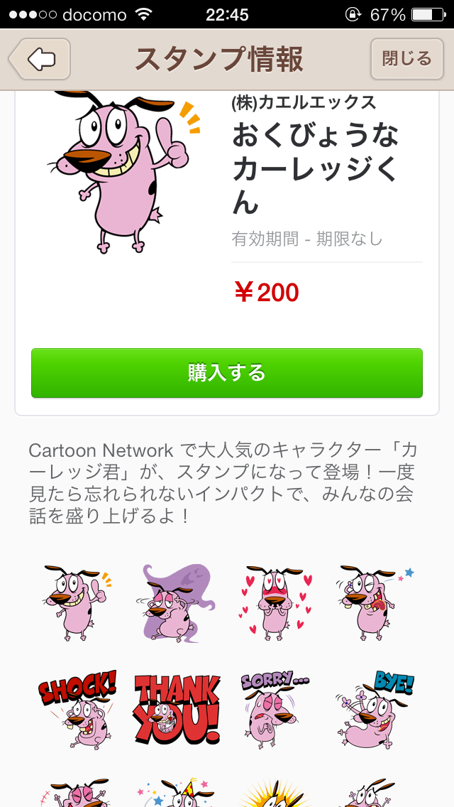 アメリカ発のアニメ番組「Cartoon Network」から臆病なピンク色の犬「カーレッジ君」が、LINEスタンプになって登場です。一度見たら忘れられないインパクトはトークを盛り上げてくれること請け合いです。