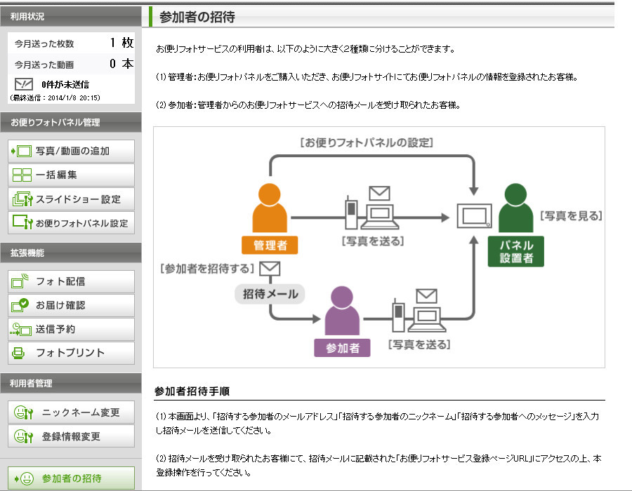 管理画面・招待メール参加者と管理者について
