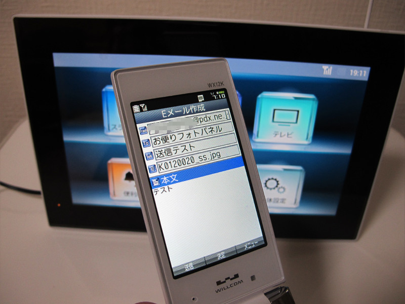 とはいっても、下準備さえできていれば、後は非常に簡単。フォトパネルのアドレスに通常のメールと同じように画像を添付して送るだけです。