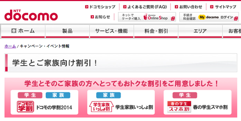 ・キャンペーン・イベント情報 : 学生とご家族向け割引! | NTTドコモ