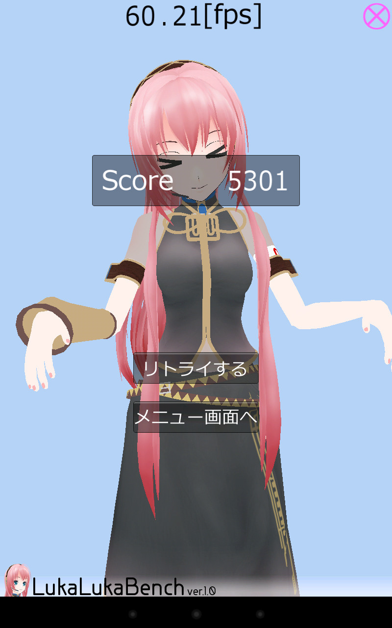 同系統のベンチマークアプリに初音ミクの「MikuMiku Bench」などがありますが、LukaLuka Benchを選んだ理由は