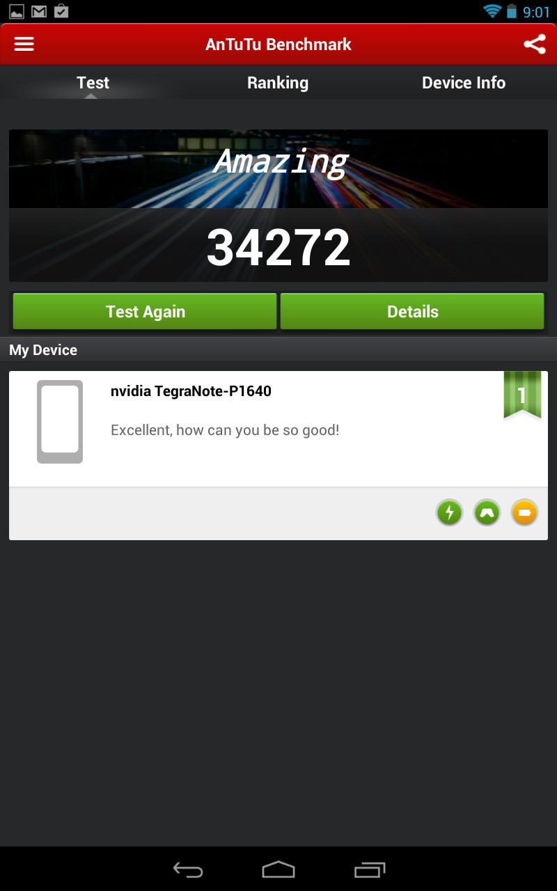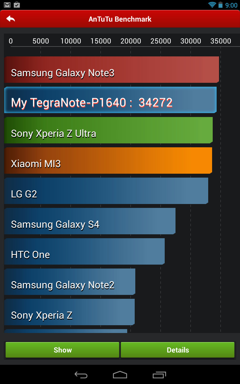 AnTuTu BenchmarkでのZOTAC Tegra Note 7のスコア
