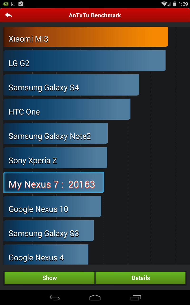 左からNexus 7(2013)、Padfone2、Nexus 7(2012)のスコア