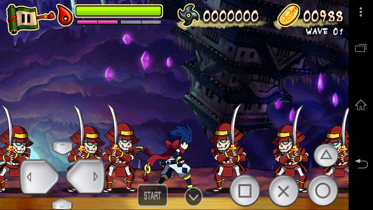 よくあるスマートフォン向けの簡易なアクションゲームなどと違って、完全完璧にゲームパッドで遊ぶ前提で本作は作れています。恐らくノーマル難易度はおろか初心者モードでもタッチ操作で遊ぶのは至難の業といえるでしょう。PS Vitaやゲームパッドを搭載したスマホ「Xperia Play」以外の環境で遊ぶのであれば「Dual Shock3」などのPS3準拠で利用できるゲームパッドでのゲームプレイをお勧めします。