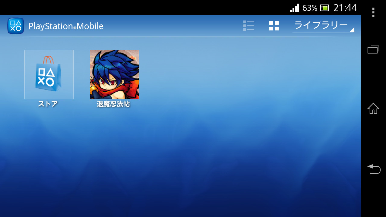 ゲームを実行するためには対応機種にあるPlayStation Mobileのアプリを起動して選択します。