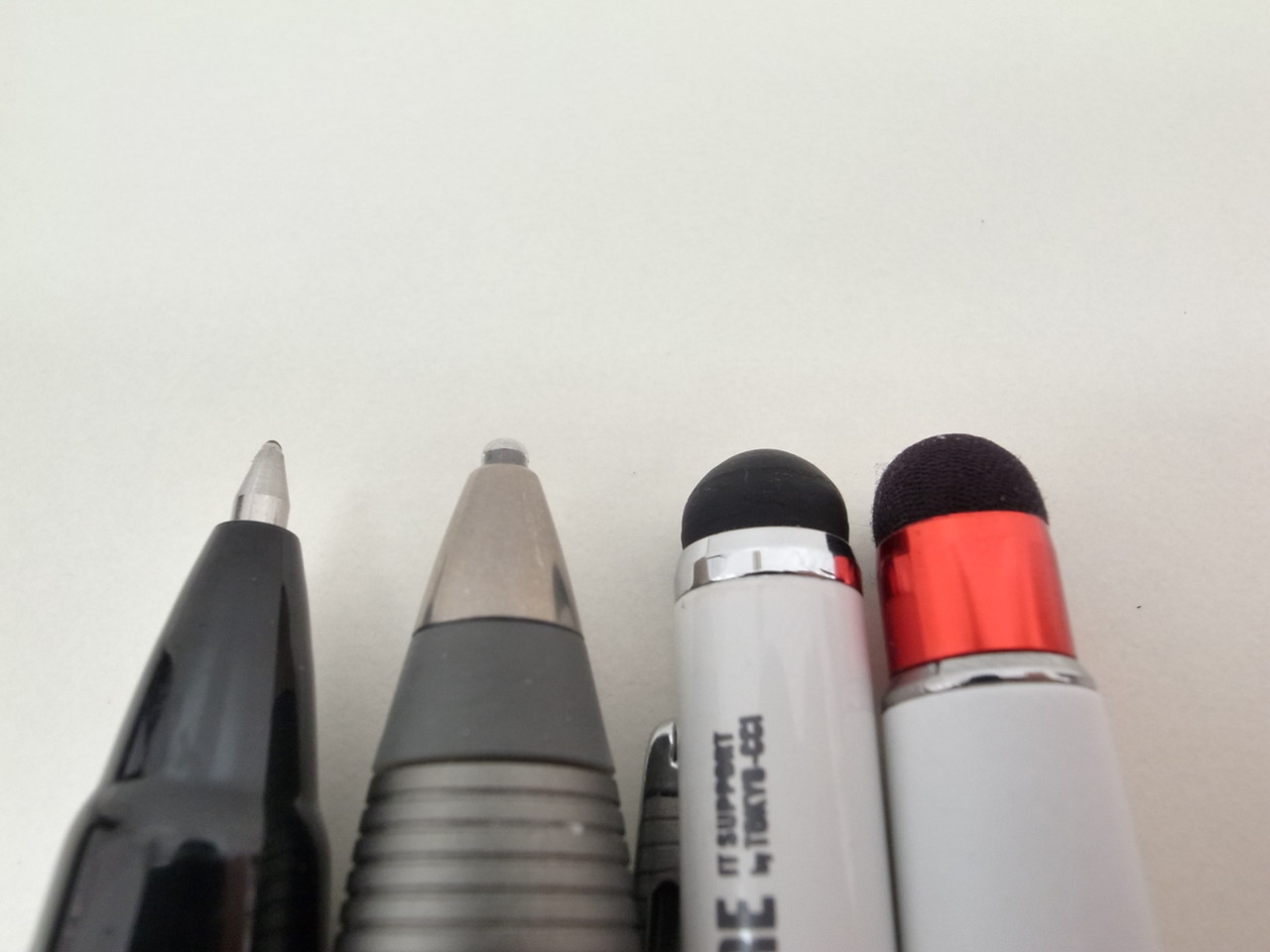 ボールペン2本とよくあるタイプの静電容量式タッチパネル対応スタイラスペンのように見えますが、実は左から2本目は「Jot Script」という名前のスタイラスペンです。
