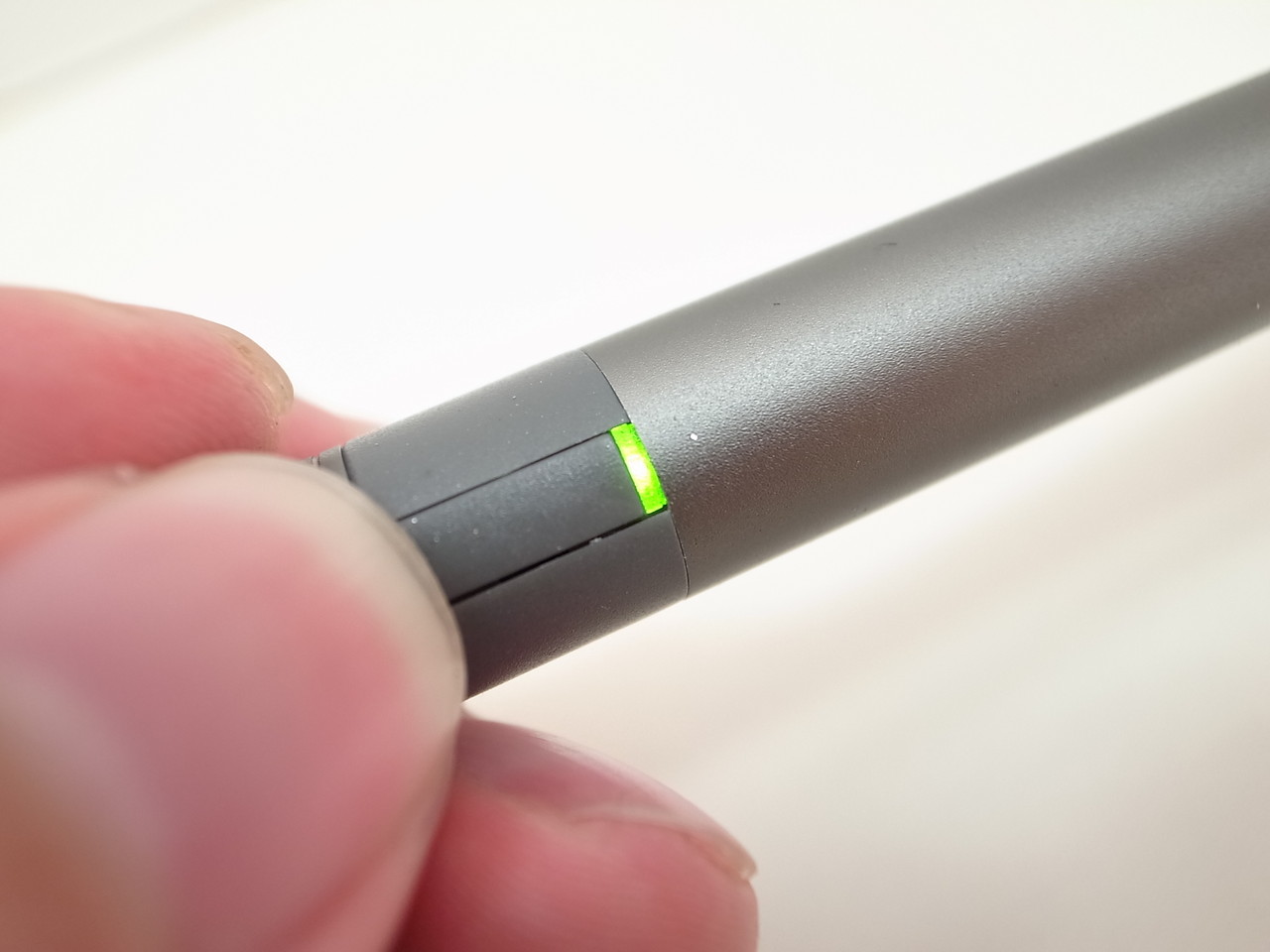 つまり、市販の電池や充電のできる電池は約1か月に1回気にすれば良さそうです。ちなみに、電源を入れる際にはペンの横にあるボタンを押すことで、緑色のランプが点灯すれば利用できるようになります。