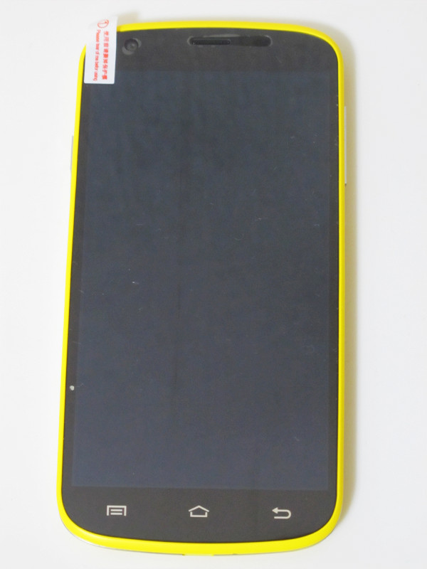 表面は5インチQHD(540×960ドット)のタッチパネル対応IPS液晶や約200万画素CMOSフロントカメラ、通話用スピーカーが配置されており、その他に通話用スピーカーの横に近接センサーがあります。
