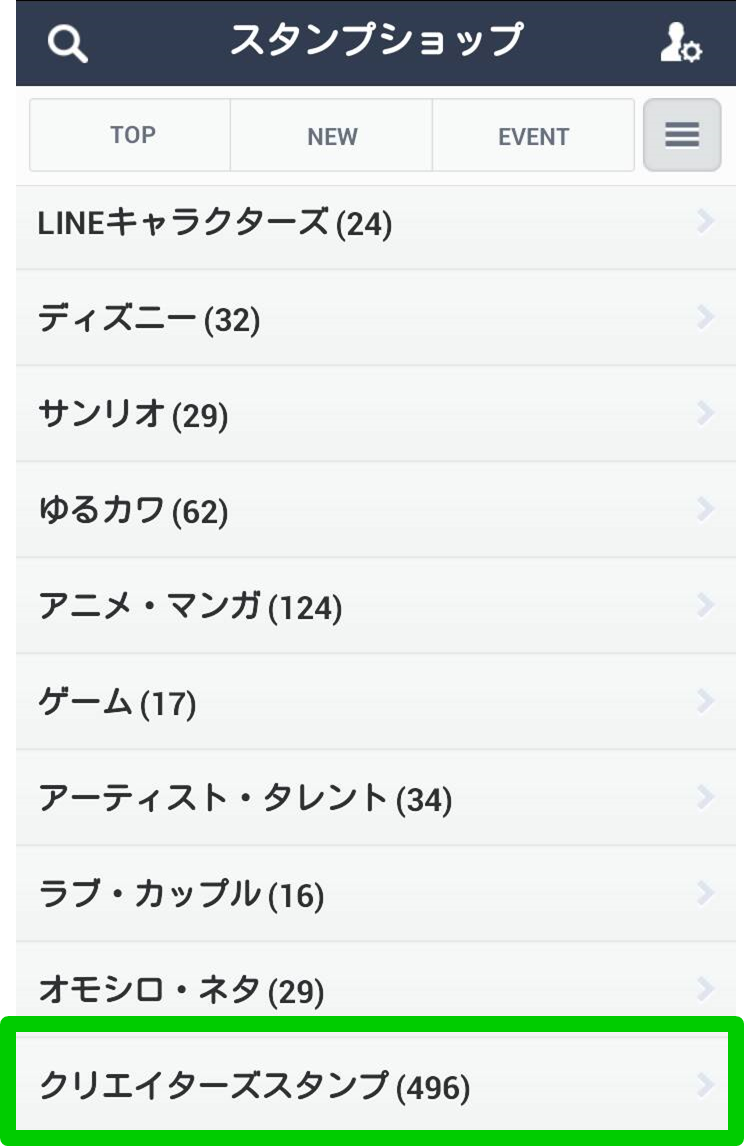 LINEのアプリからクリエイターズスタンプを購入するには以下の方法で行います。