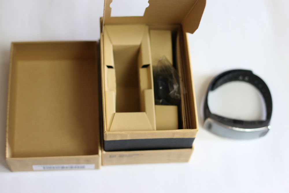 箱を開けると、Gear Fit本体がお目見えします。曲面ディスプレイならではの光沢が萌えます。