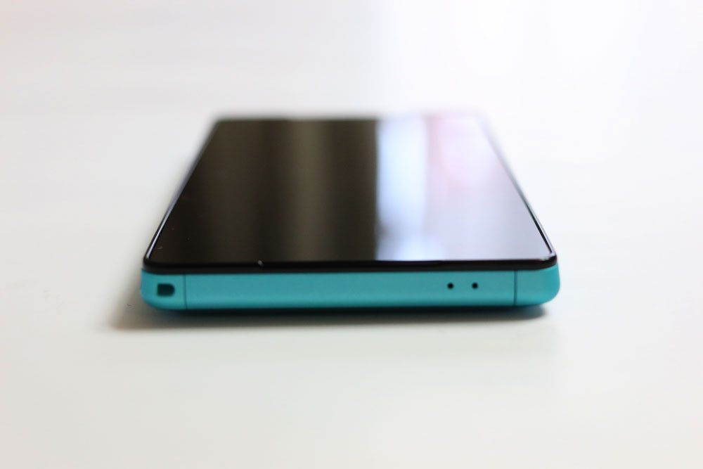 背面には、ダブルインモールド加工と呼ばれる多層成型が施されており、“XPERIA”のロゴが浮き上がっているように見えます。角度によっても見え方が異なり上品な仕上がりとなっています。素材もマット感があり、滑りにくく持ちやすいと感じました。