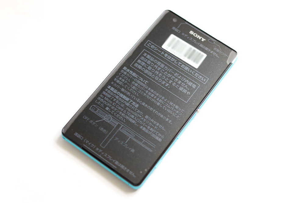 本体ディスプレイと背面には利用についての注意が書かれているフィルムが貼付されています。