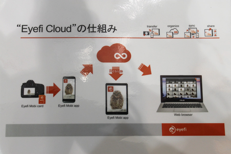 PCでの「eyefiのクラウドストレージ」への接続はWebブラウザーからとなっています。ブースではEyefi Cloudは希望を伝えれば説明員がデモンストレーションを見せてくれるので、気になった方はその旨を伝えるといいでしょう。