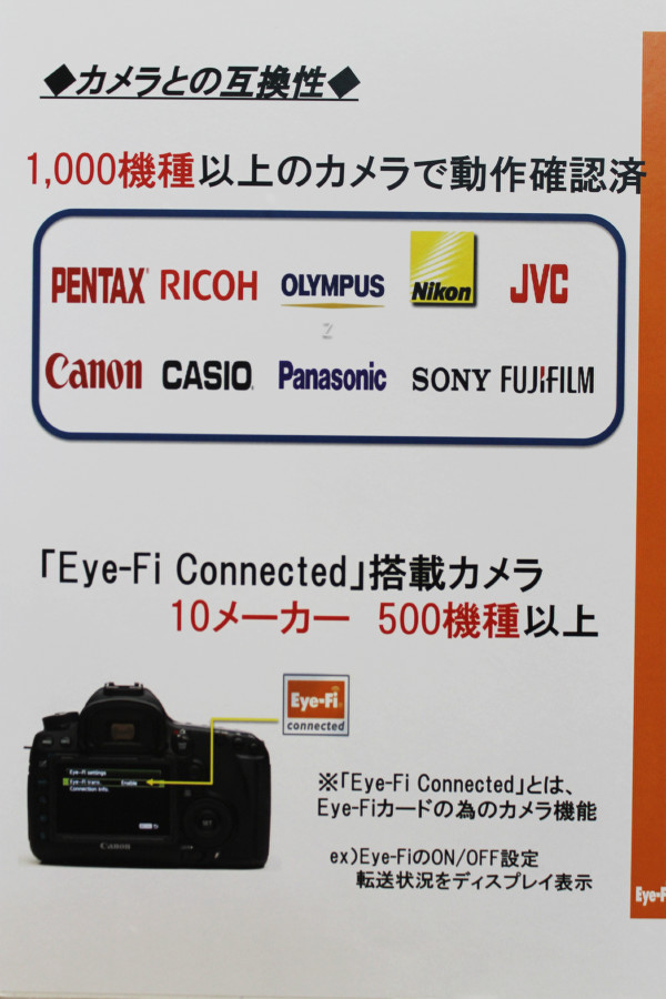 モバイル向けの周辺機器としては珍しくAmazon製タブレット「Kindle Fireシリーズ」にも対応しています。また、一覧に名前はありませんが、旧三洋電気のデジタルカメラ「Xacti(ザクティー)」も対応しているということです。その他、従来のEye-Fiカードと同じようにPCと連携するためのアプリケーションも準備中だそうです。