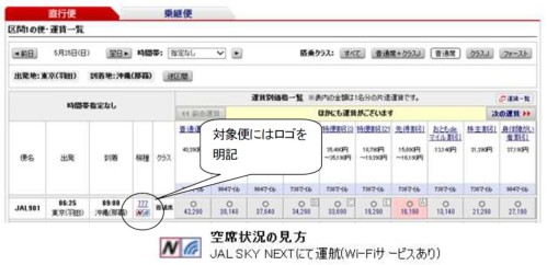 JAL SKY NEXT(JAL SKY Wi-Fi)の運航情報は搭乗日の前日にJAL公式Webサイトの発着案内「予約・空席照会」( https://fltinfo.5971.jal.co.jp/rsv/ArrivalAndDepartureInput.do )で7月23日21:00頃(予定)より確認できます。