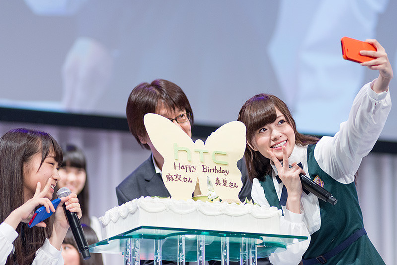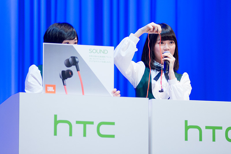 まずは、HTC NIPPON代表取締役社長の村井良二氏が新しいテレビ(TV)コマーシャル(CM)を紹介し、CMに出演する乃木坂46を紹介した。乃木坂46は新CMの楽曲10thシングル「何度目の青空か?」を初披露した。