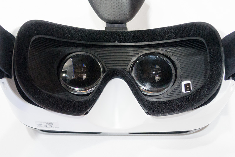 Gear VRには5.7インチディスプレイを搭載したGalaxy Note 4が入っているということもあり、前面の面積は大きいが、ディスプレイや通信、加速度センサー、カメラなどのHMDに必要な機能はすべてコードレスなGalaxy Note 4で行うため自由度が高くなっている。