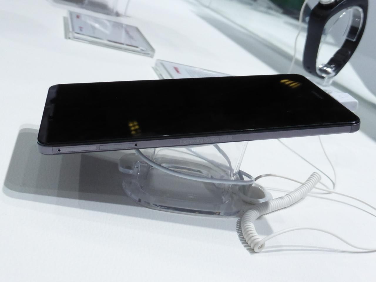 日本でもSIMフリーモデルが販売されている「Ascend P7」においてディスプレイを覆うフロントパネルにサファイアガラスを採用した「Ascend P7 Sapphire edition」も発表され、実際に披露されていました。サイドがローズゴールドのメタルフレームになっており、リアもセラミックを採用し、質感が非常に高くなっているということです。