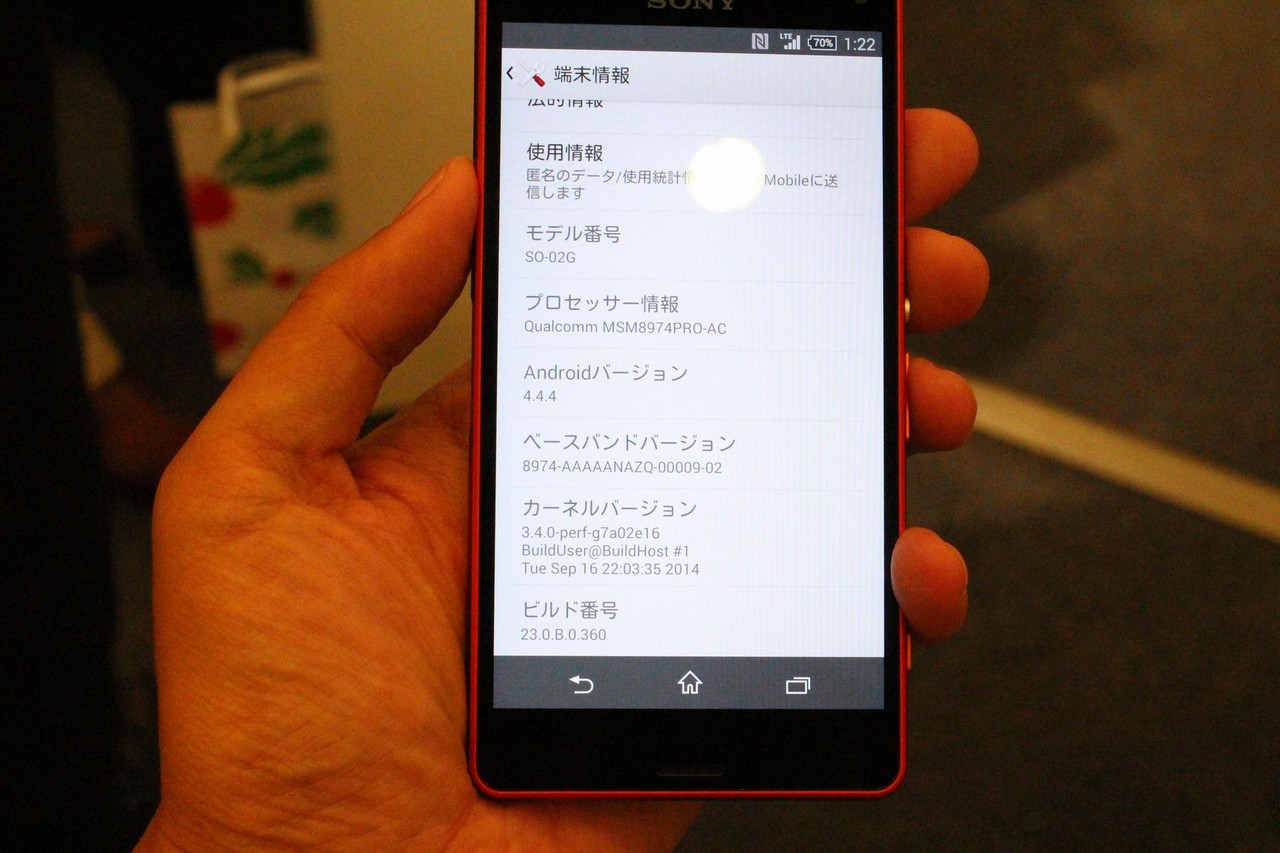 | 機種名 | Xperia Z3 Compact SO-02G |