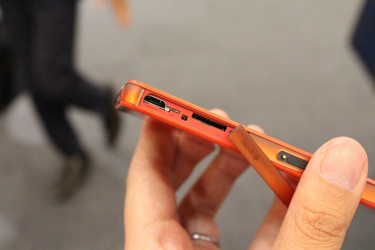 左側面上部にはmicroUSB端子と、microSDXCカードスロットがある。microSDXCカードは128GBまで対応。