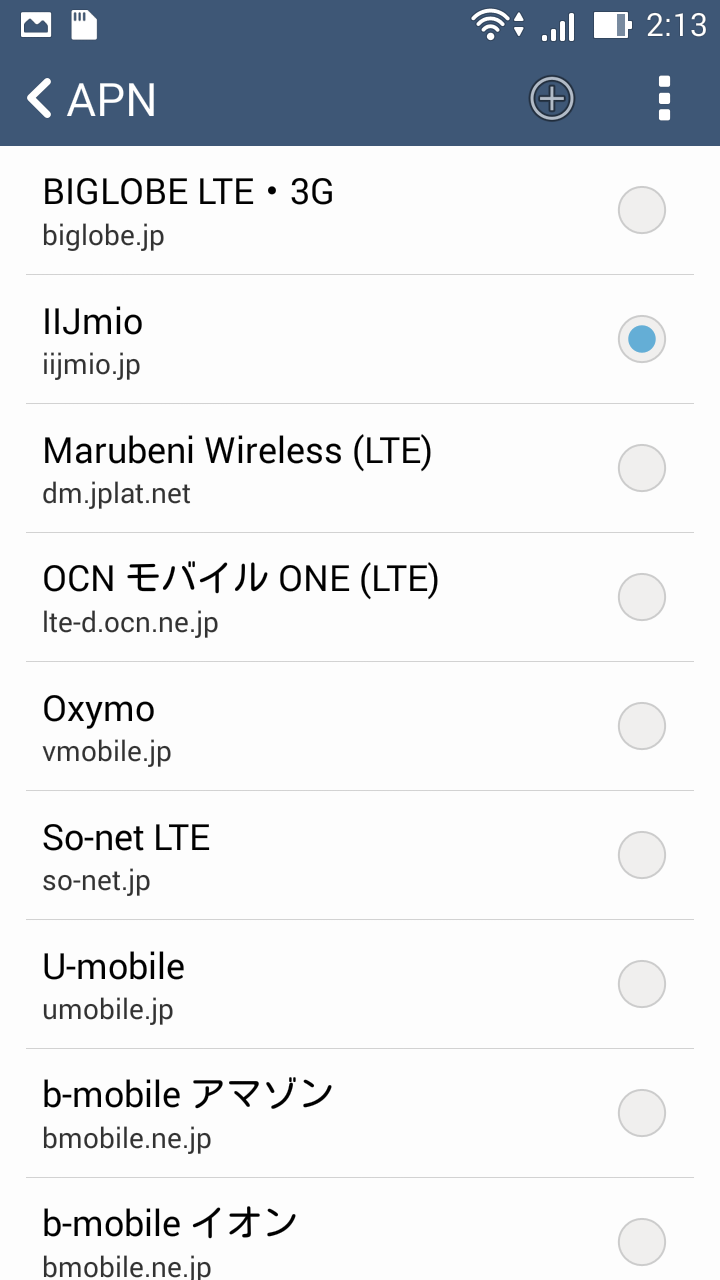 今回は使用したのはIIJmioのSIMカードなので、「IIJmio」にチェックを入れればOKだ。少し時間が掛かるがステータスバーのアイコンが「3G」や「H」表示から「4G」表示に切り替わる。