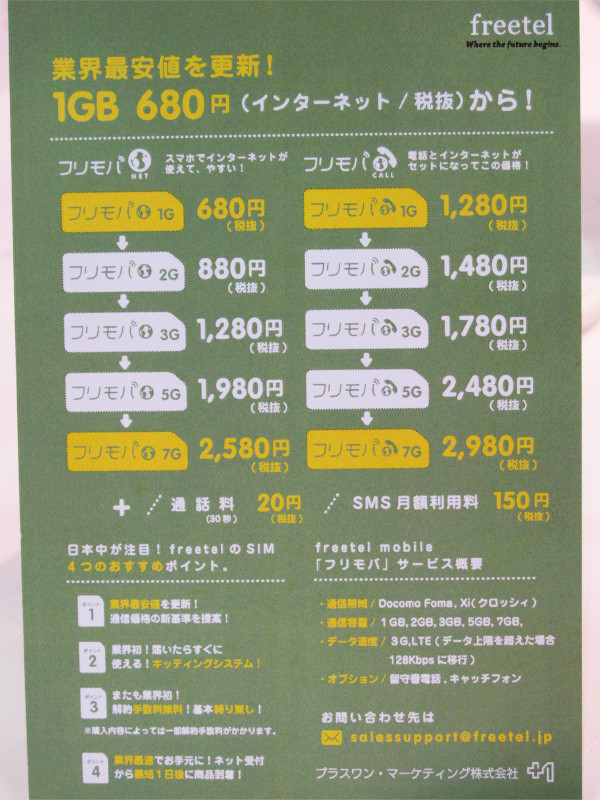 | 格安SIMサービス「freetel mobile(フリモバ)」がスタート! |