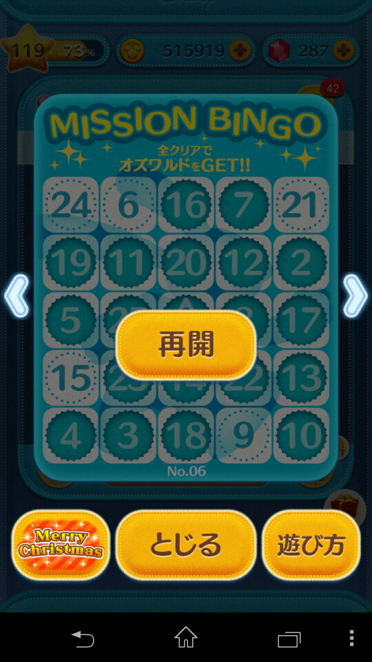 ・LINE:ディズニー ツムツム、クリスマスイベントカード「MerryChristmas」の1枚目をクリアしてプレミアムチケットとスキルチケットを獲得【ハウツー】