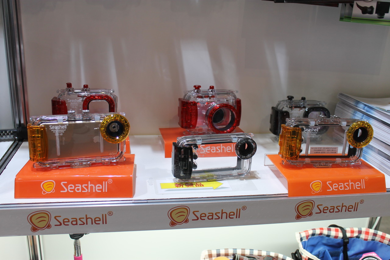 今回はETSUMIブース内のSheshellのコーナーにて展示されていたiPhoneやGALAXYなど向けケース「Sheshellスマートフォン用防水ハウジング」を紹介します。