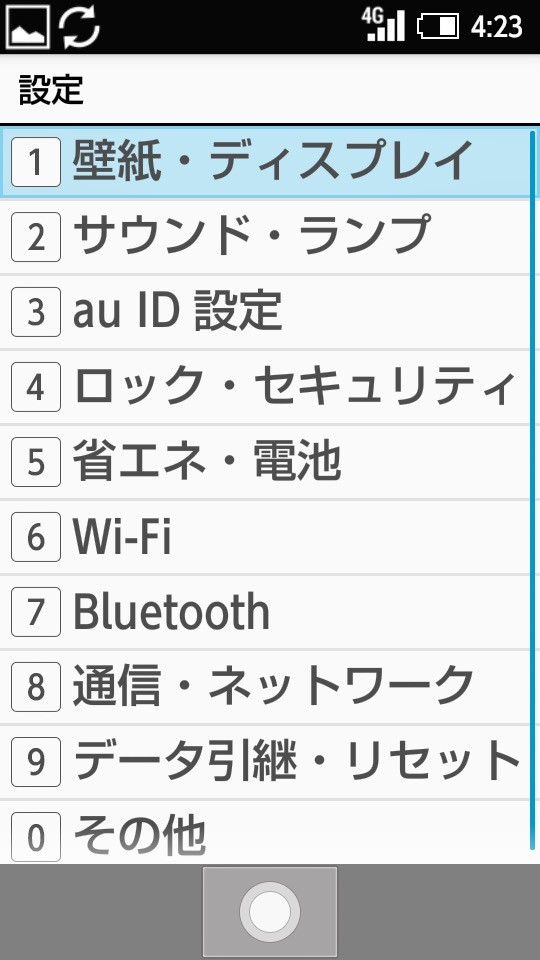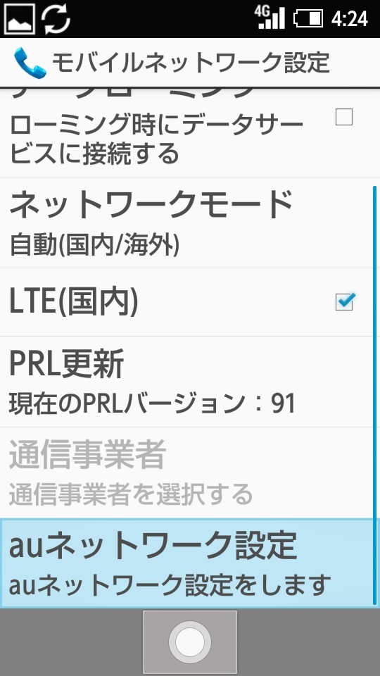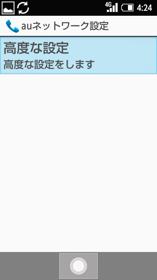 初期設定を閉じたら、「メインメニュー」→「設定」→「通信・ネットワーク」→「ネットワーク設定」→「モバイルネットワーク」→「auネットワーク設定」→「高度な設定」にてアクセスポイント(APN)の設定を行います。
