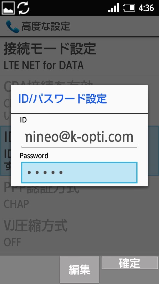 ・APN設定:mineo.jp