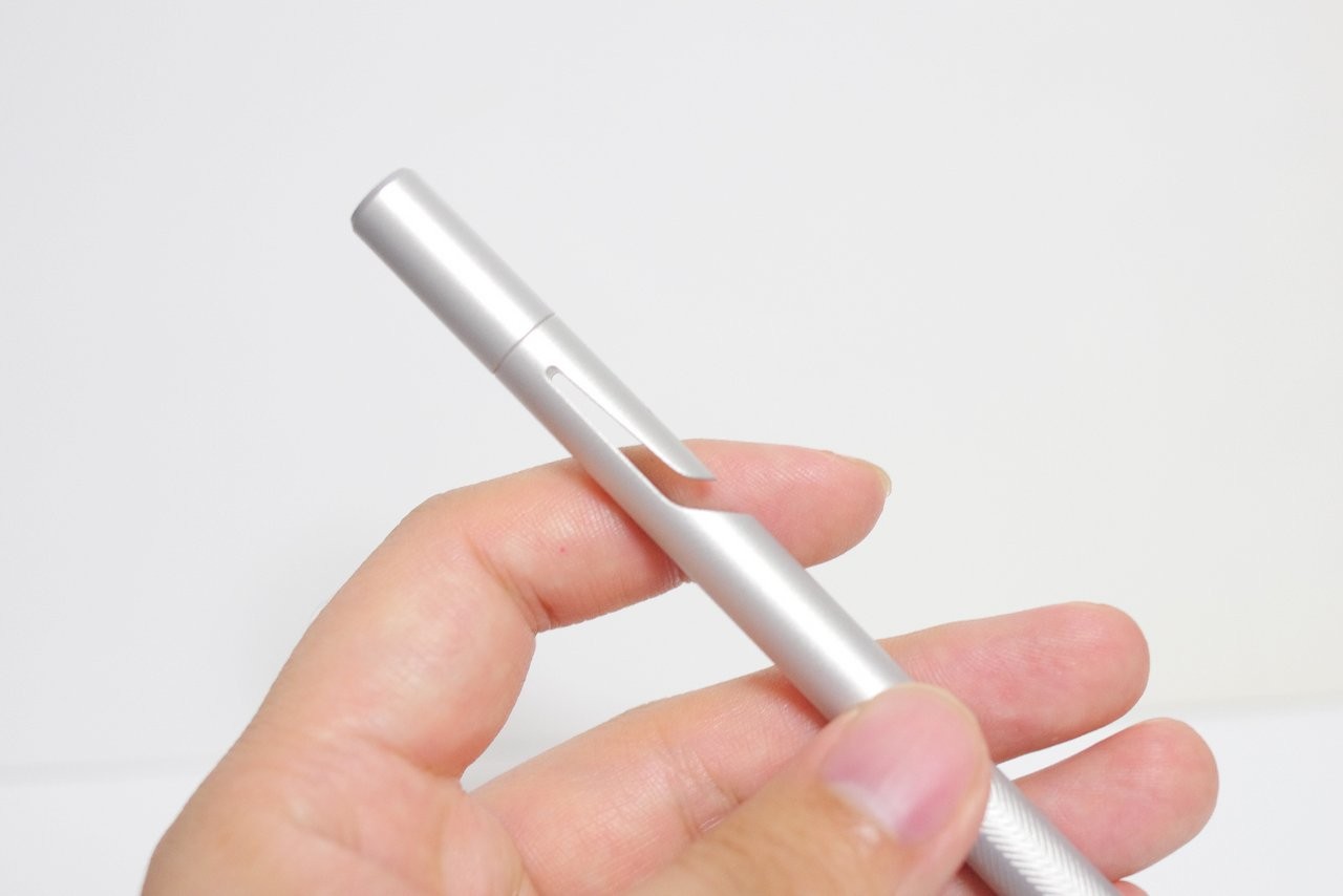 また、アルミ削り出しのペンには胸ポケットに付けるのに便利な切り込みがあり、高級感と実用性がマッチしていると感じます。