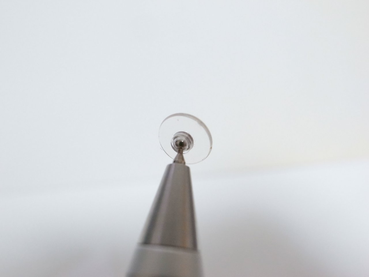 ペン先には透明な円盤がついていて、それをスマホやタブレットのディスプレイ面を滑らせて使います。透明な円盤の中心部分に静電気が通り、認識させるという仕組みです。