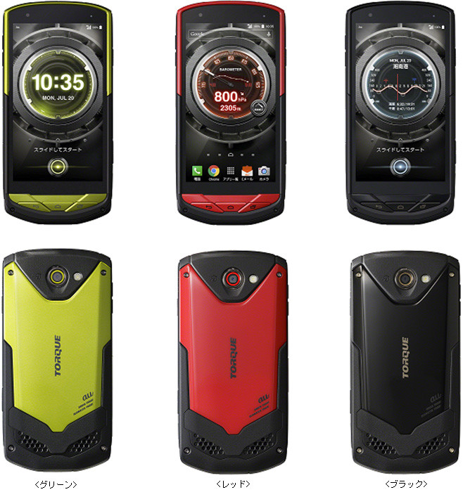 KDDIおよび沖縄セルラーは14日、今夏以降に発売・開始する新モデルや新サービスを披露する「au発表会 2015 Summer」を開催し、防水・防塵に加え、さまざまな耐性を持ったAndroid 5.1(開発コード名:Lollipop)採用タフネススマートフォン(スマホ)「TORQUE G02」(京セラ製)を発表しています。2015年7月上旬に発売開始予定。