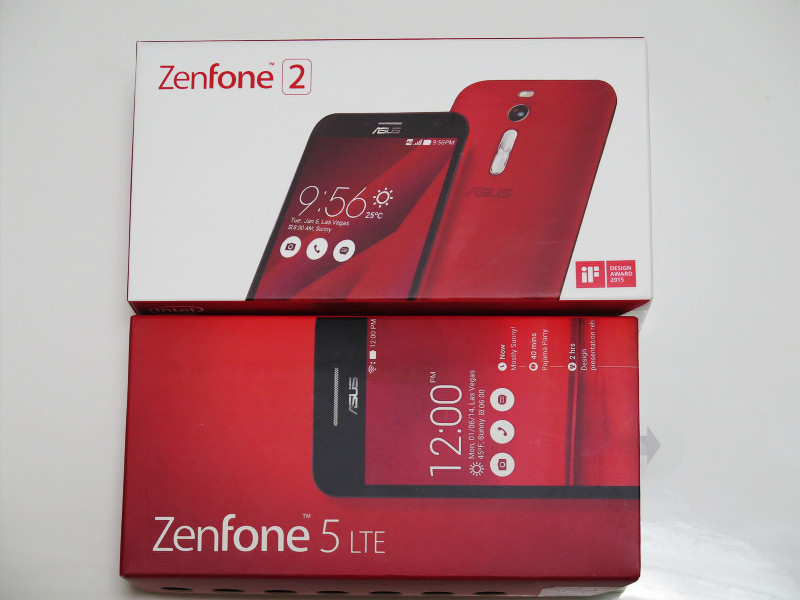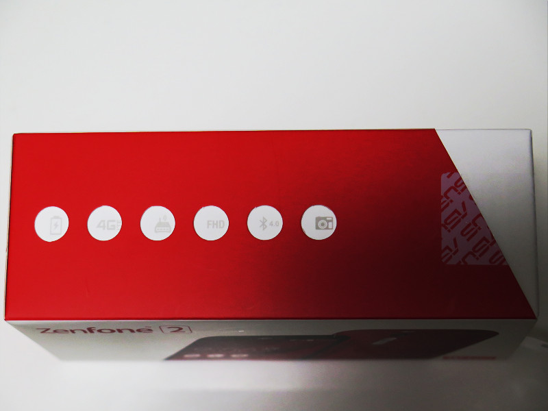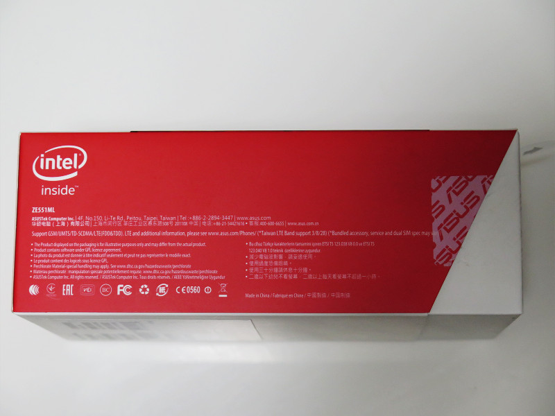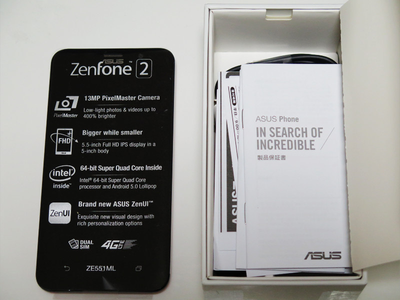 ZenFone 2個装箱の前面(写真=左)および裏面(写真=右)