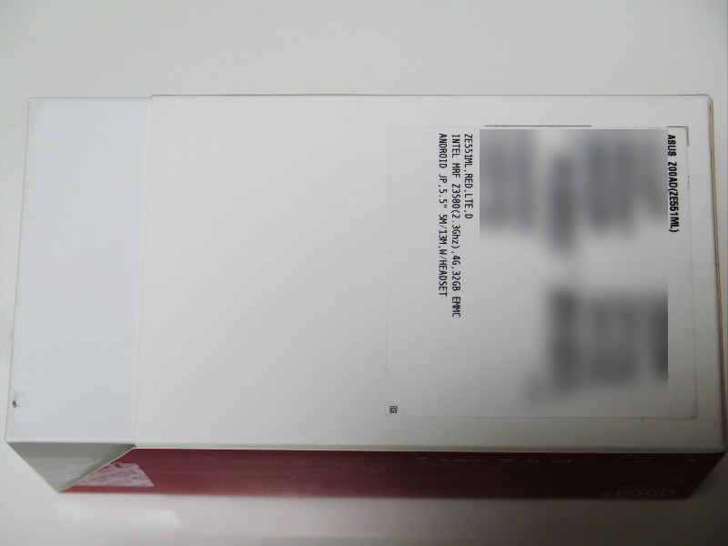 ZenFone 2の個装箱は前モデルのZenFone 5と同じく、内箱を横へ引き出すタイプのものになっています。ここで、筆者が感じたのは(個体差もあるかもしれませんが)、かなりみっちりと内箱がはまっていて、かなり力をかけないと取り出せなかったことです。ここで加減を誤ると箱を破損してしまう可能性もあるので、あせらずに少しずつ力をかけて取り出していきます。裏を返せば、それくらいサイズを気にしてぴっちりと作られているのかもしれません。