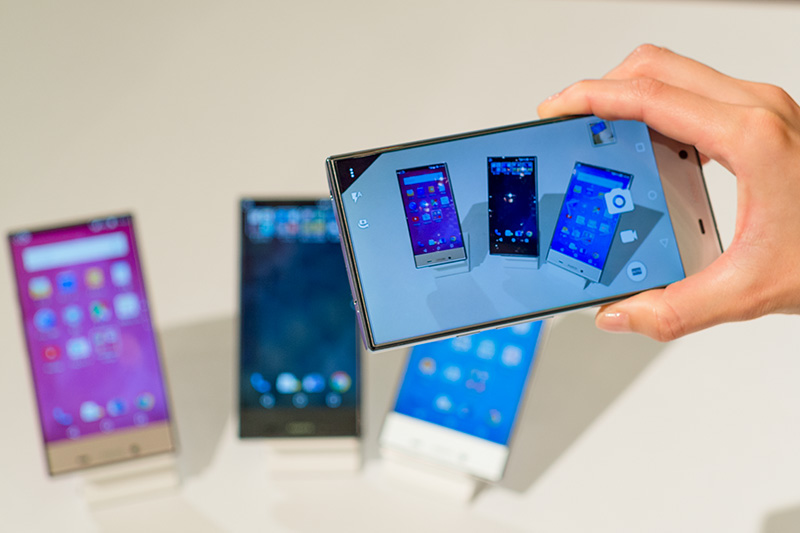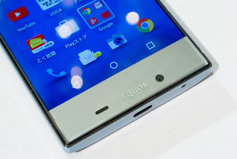アウトカメラは約800万画素で基本的な機能は同時に発表された上位機種「AQUOS Xx」と同じだが、「スロー録画」および「スーパースロー映像」の機能は非搭載だ。撮影時にはちょうど下部のベゼル部分が手で隠れるので空間にディスプレイが浮いているような感覚で撮影が楽しめる。