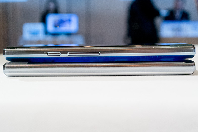 外観は左側面に電源キー、ボリュームキー(写真=上)、右側面はフラットな形状をしている(写真=下)。