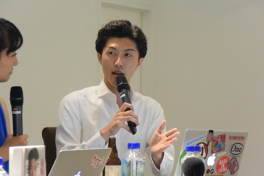 aedi works.代表取締役の竹中星矢氏はトークショーの中で、「例えば、あなたが持っている服とかで過去に同じモノを買った人とか、趣味があう共通の友達とか、モノからスタートしてすぐに発見できる、そんなサービスです。『Sqore』をよろしくお願いします。」と、Sqoreについて語った。