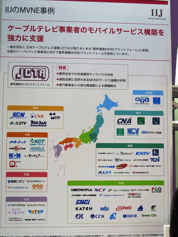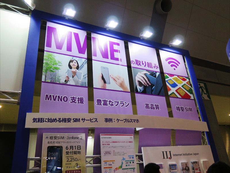 WIRELESS JAPAN 2015の展示会場にて格安SIMなどの仮想移動体通信事業者(MVNO)の満足度が高く携帯電話好きには馴染み深い「IIJmio」を提供するインターネットイニシアティブ(以下、IIJ)がブース内にて、仮想移動体サービス提供者(MVNE)やM2M事業の展示を行っていた。本記事ではその様子を紹介します。