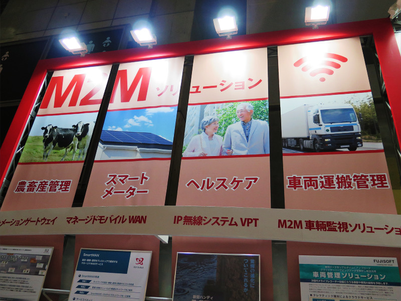 一方、M2Mソリューションの展示コーナーでは組込機器向けのソリューションのほか、タクシーや大型トラックの無線を携帯電話ネットワーク網に置き換えて、安価な初期投資で利用できる「ボイスパケットトランシーバー」などが展示されていました。