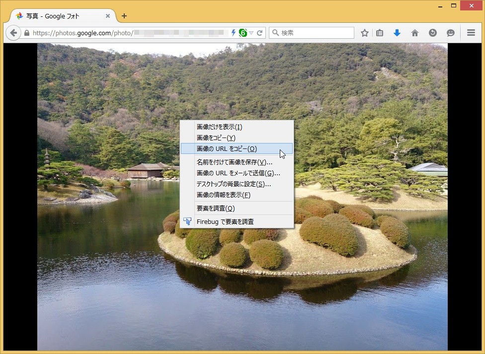 WindowsやMacなどのパソコンのWebブラウザーでは、Webページ上の写真を右クリックして、その写真のURLをコピーできるものがあります。今回はこの写真URLコピーを利用(悪用)します。以下では例として、写真サービスにGoogle フォトを、Google フォトを操作するWebブラウザーにWindows版のFirefox 38.0.1を、第三者を想定したブラウザーとしてInternet Explorer 11を使用します。なお、写真やアカウントはすべて筆者が用意し、実際に第三者の写真を覗き見ているわけではありません。