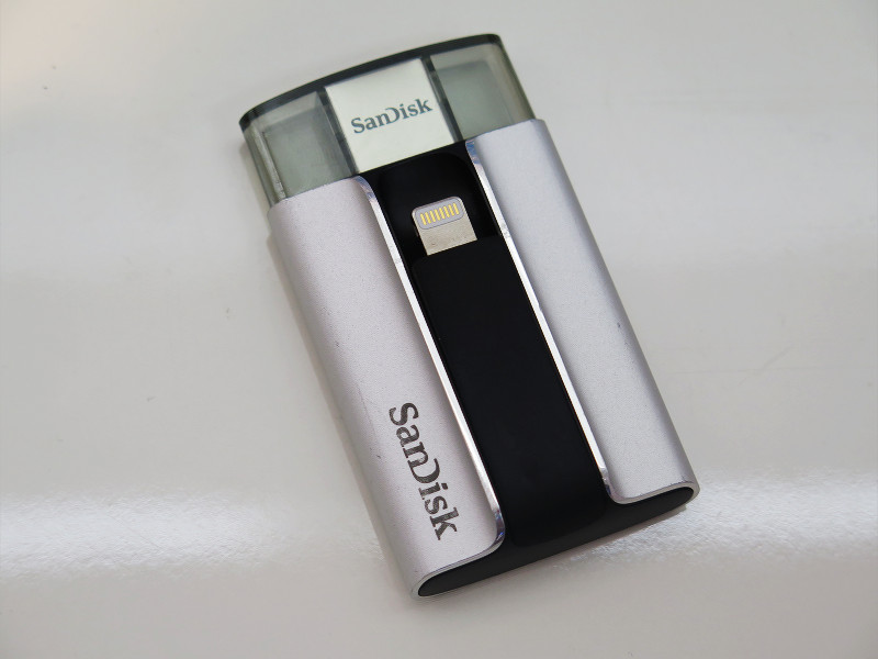 iPhone 5以降などのiOS端末を対象とした製品で、Lightningケーブル端子とフルサイズのUSB端子を1つずつ備えている製品で、オンラインストレージが使えない(詳しくないからわからない)、もしくは、PCを持っていない(iPhoneに限らずスマホのみのユーザーは意外と多いですが)場合にデータを直接、バックアップしたりできます。