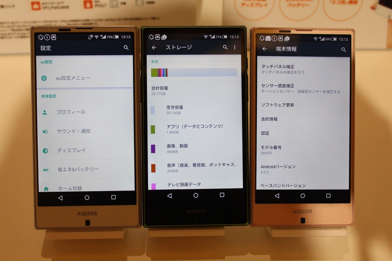 シャープでは今夏にau以外にもNTTドコモおよびSoftBank向けにそれぞれフラッグシップモデルを投入しますが、NTTドコモ向け「AQUOS ZETA SH-03G」が約5.5インチ、SoftBank向け「AQUOS Xx」が約5.7インチとかなり大きめのディスプレイを採用しているのに対し、au向けAQUOS SERIE SHV32は約5.0インチと最近ではフラッグシップモデルとしてはむしろ小さめなサイズとなっています。