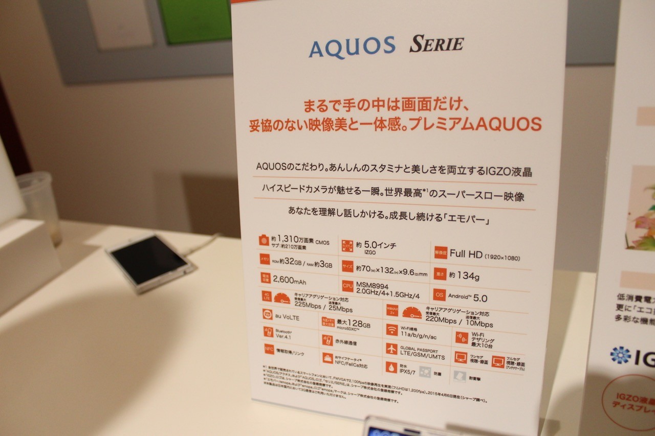 最後に発表会の展示場でAQUOS SERIE SHV32を試した模様や主な特長などを説明員に説明してもらった動画を紹介しておきます。
